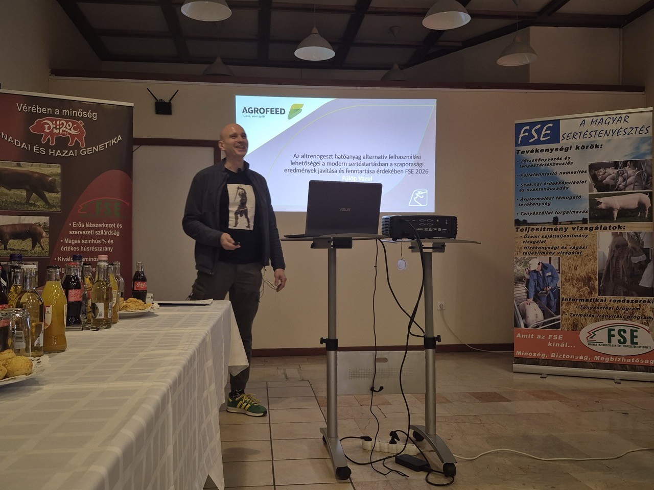A Magyar Fajtatiszta Sertét Tenyésztők Egyesülete március hónapban két alkalommal várta tagjait szakmai rendezvényeire, Kaposvárra és Gyomaendrődre. A kaposvári találkozót március 12-én tartották négy izgalmas előadással. Dr. Halas Veronika, egyetemi tanár, a MATE Élettani és Takarmányozástani Intézet Gazdasági Állatok Takarmányozása Tanszék vezetője egy friss kísérlet alapján mutatta be a sertések takarmányfelvétel mintázata és a növekedési teljesítménye közötti kapcsolatot. Alpár Botond az Agrofeed K+F vezetője a fermentált takarmányozásról, annak sertésekre gyakorolt pozitív hatásairól tartott érdekfeszítő előadást. Szintén az Agrofeed részéről két gyakorlati előadással lépett a pódiumra Fülöp Vazul szaporodásbiológiai és takarmányozási szaktanácsadó. A hallgatóság a kocaállományokban alkalmazott altrenogeszt kezelésekről, azok szaporasági eredményeinek javítására, fenntartására gyakorolt hatásairól hallhatott izgalmas gondolatokat. Záró előadásként Fülöp Vazul a lehetséges takarmánygörbék és a szaporaság összefüggéseit vázolta fel.