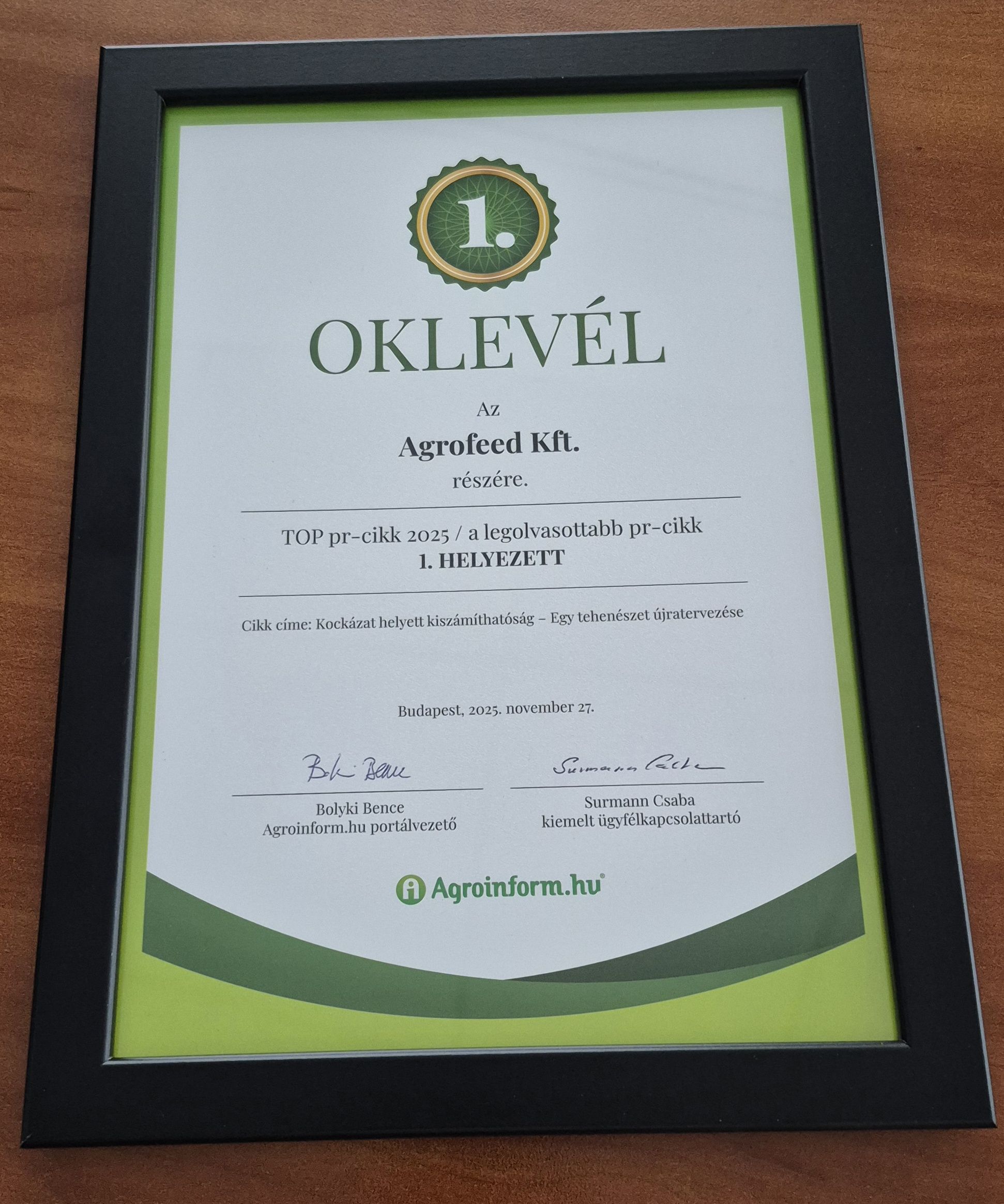 – A 2014-es zárt laktációnk 6 400 kg volt; ma a fejős állományunk átlaga tartósan 40 liter felett van, és nem hajszoljuk túl az állatokat. A tőgyegészség javult: ami a régi rendszerben rendszeres gond volt, az az újban gyakorlatilag eltűnt. Az országban az elsők között vezettük be a fejőrobotba épített progeszteron-mérő rendszert: automatikus tejmintavétellel, progeszteronszint alapján támogatja a szaporodásbiológiát. Ennek köszönhetően a hormonfelhasználás szinte nullára csökkent, kevesebb az állatmozgatás és a hibalehetőség, a termékenyítés időzítése pedig pontosabb. Az első években folyamatos állományvásárlásra kényszerültünk; ma már üszőt is értékesítünk, ami egészen más pozíciót ad a piacon. Bízunk benne, hogy a jövőben még inkább számítani fog, honnan és milyen tej érkezik; mi ehhez igazodva, két naponta kamionnyi, következetesen jó minőségű tejet szeretnénk kiadni a kapun – kiszámítható költségszinten, ésszerű kockázattal és stabil, egyszerű takarmányozási rendszerrel.